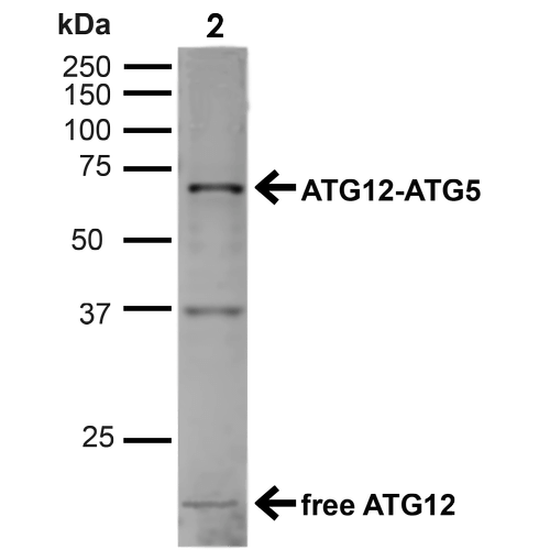 Predicted molecular weight at ~15.1kDa. Observed molecular weights at ~48-55kDa based on ATG12-ATG5 heterodimer.