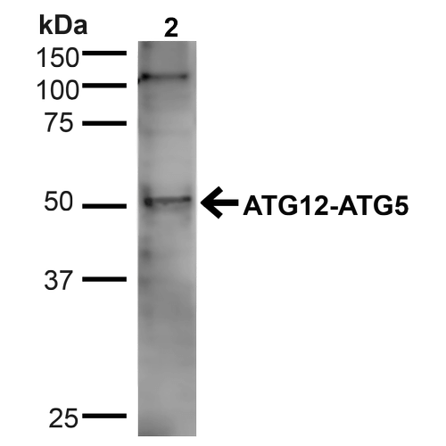 Predicted molecular weight at ~32.4kDa. Observed molecular weights at ~48-60kDa based on ATG12-ATG5 heterodimer.